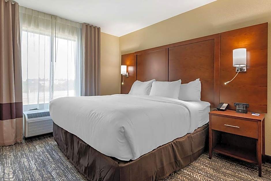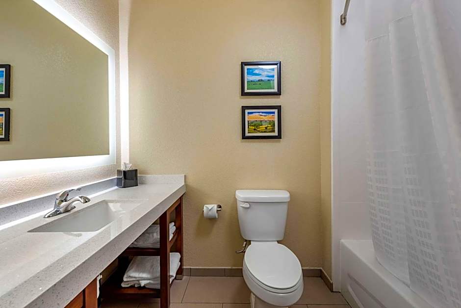 The suite is furnished with a desk and a seating area. The unit has 2 beds.